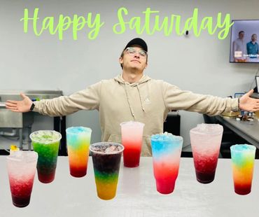 Energy Teas: Bahama Mama, Pink Starburst, Island Barbie, Moana, Captain America, Wonder Woman, Mermaid Water, Watermelon Crisp, Tie Dye, Aloha, Texas Sunrise, & many more